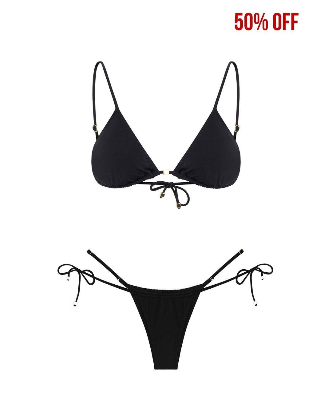 Çift ipli ve büzgülü tasarımıyla vücuda tam uyum sağlayan bu bikini takımı, zarif detaylarıyla dikkat çeker. Üstte kare formda metal aksesuar, altta ise arka kısımda G harfli gold metal logo bulunur. Tüm metal parçalar paslanmaz ve kararma yapmaz. Esnek yapısıyla hem konforlu hem de şık bir kullanım sunar.